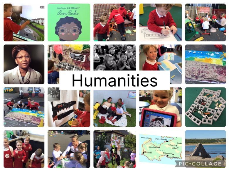 What a half term it has been! We have been fully immersed in our 'Cynefin' topic and used it to explore where we live. We have looked at Penclawdd Railway and we used Google Maps to see if we think if we could have heard the train if we lived there in the past! We also made our own Arable Farm and we thought about the different landscapes - we looked at Gower arable farms - we seem to have more sheep farms - we think they like the marshland! In addition to this we used the apples from our locality to make delicious crumble! We talked about the seasons and what we have on our doorstep. Whist reading our literature we were able to talk about our local beaches - we shared lovely memories of our special place. During Black History Month we learnt about Rosa Parks - we now understand that people changed the world for our today - we can share the value of kindness - just like Rosa shared. In RVE we have worked with Mr Culpin and we have delved into the big question: How do Hindus celebrate Diwali in Swansea? Our learning journey has included lively discussions, creating vibrant firework displays using chalk on black paper, designing intricate rangoli patterns, decorating hands with beautiful henna art, and immersing ourselves in captivating Diwali stories.