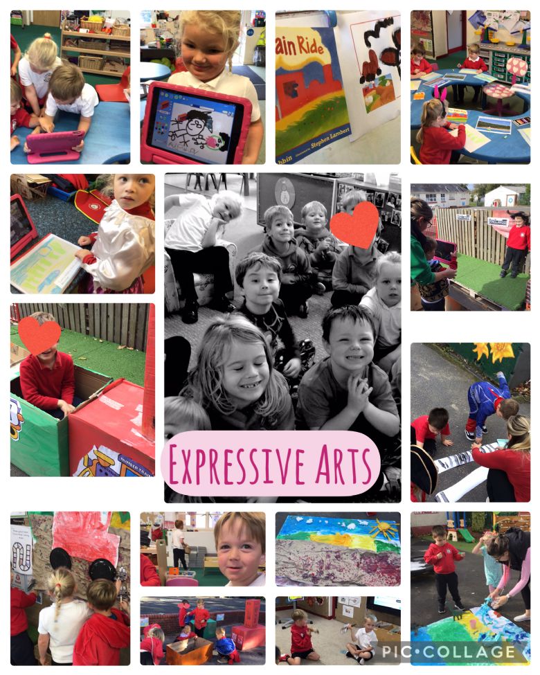 Oh, how we love Expressive Arts! We have explored a medley of skills this half term. We have created our own train - we of course had to design it first! We used various materials to depict an arable farm - even adding in the seeds with our fingers! We have recorded our own annimation of Penclawdd Railway and we even turned oursleves back in time by using the i pad to take us back to 'sepia or black and white' tones. In music we have been listening attenativley and we have used rhythm, pitch and pace - we have loved a carousel of activities with the Sealions class! We ara so proud of our learning!