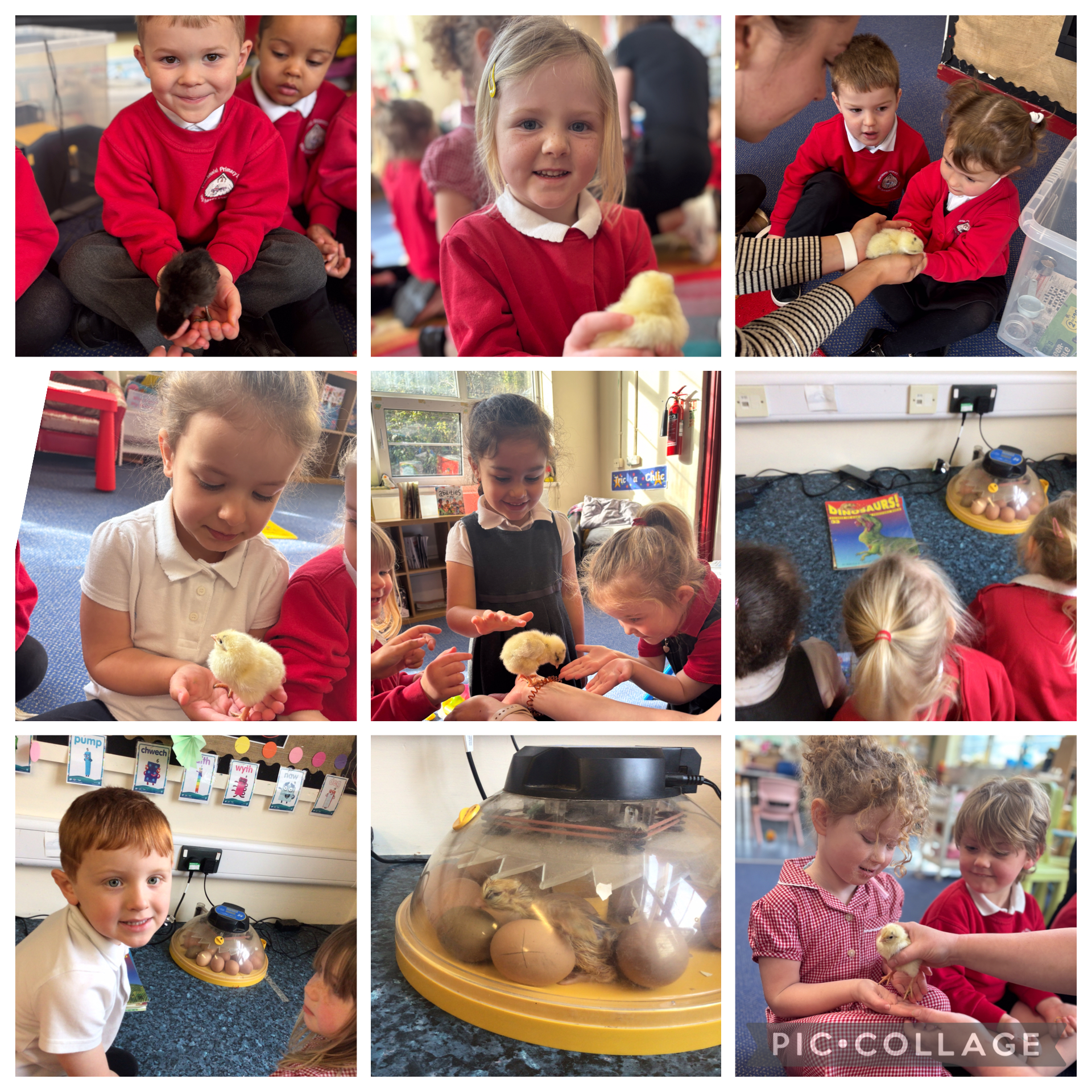 With Spring time comes chicks of course, and we have been so lucky to have had chick eggs from Will’s Farm in school!! We have waited patiently for them to hatch, checking on them every day for 3 weeks!! And now we have 12 gorgeous little chicks living in our school for a few days!! They are so cute and the children have loved watching them being born, eating and drinking and maybe even pooping!! We have had some cuddles too and they are so happy – we love to hear the chirping!