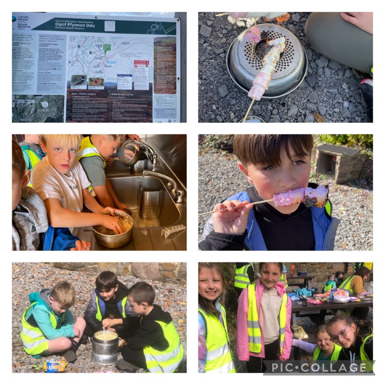 We started our topic 'Misty Mountain Sierra' with a visit to Penwyllt in the Brecon Beacons. We had a great time with our very own Mountain Rescue guide . We climbed the mountain and found ourselves in the clouds , we explored and looked for fossils .We cooked pot noodles and toasted marshmallows. We even found the entrance to a trolls cave. It really was a great day!