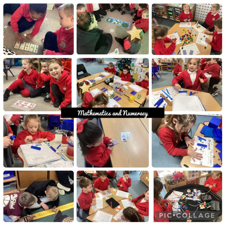 Across the term, the children enjoyed number hunts, maths games, Christmas-themed challenges, and applying their skills through role play in the cockle shop and Santa’s wrapping station, using money, measuring, and positional language in meaningful contexts.