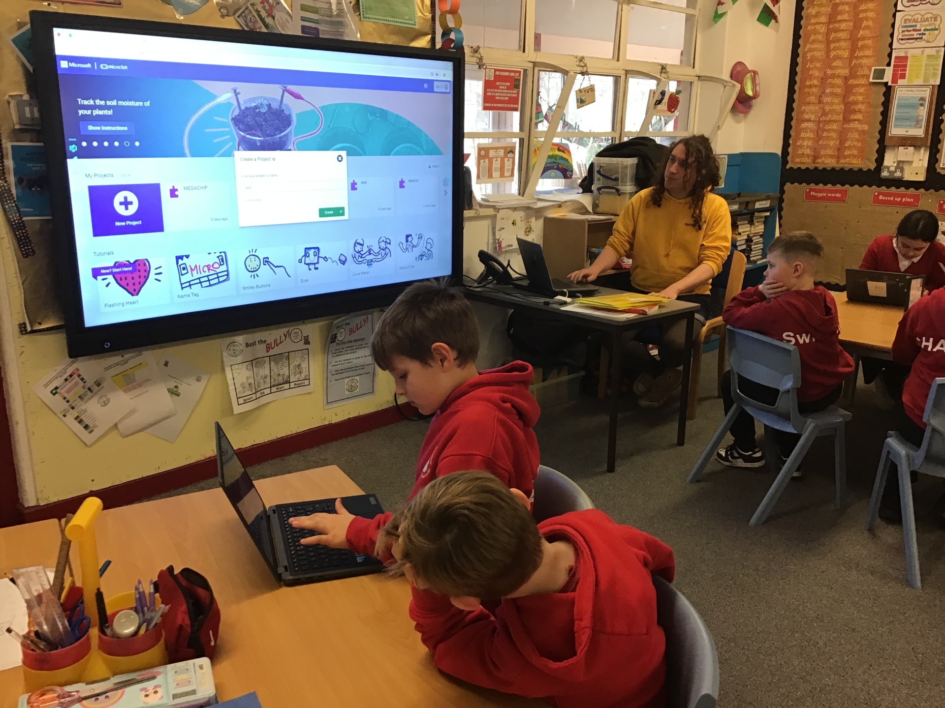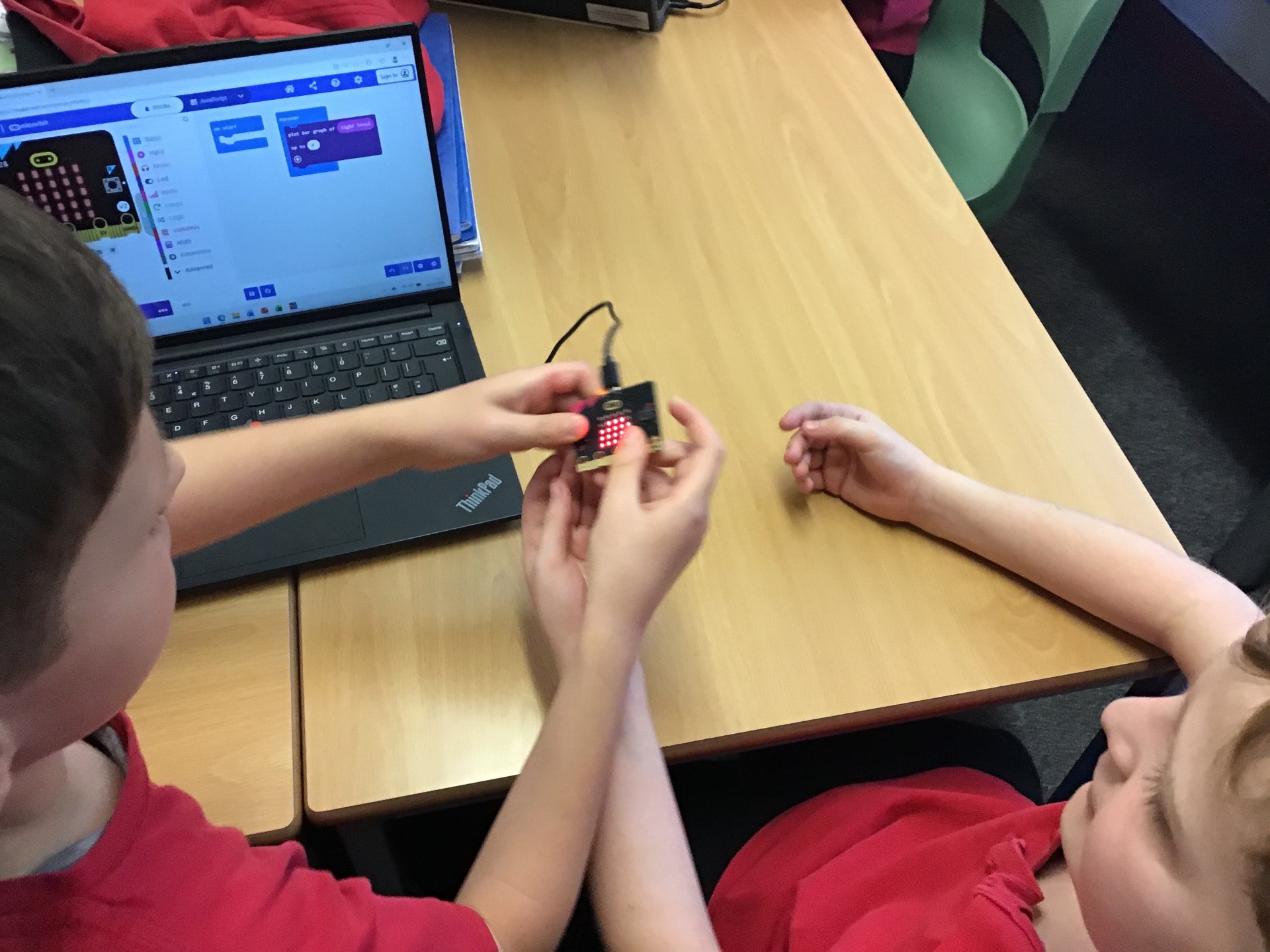 In our digital lessons, we’ve learned how to code Microbits. We worked with Techno Camps to create a light sensor that went off when there was enough light in a room, or come on when the room went dark. We also created feelings badges. We had to code the individual LEDs to create a smiley or sad face that could be controlled by pressing different buttons.